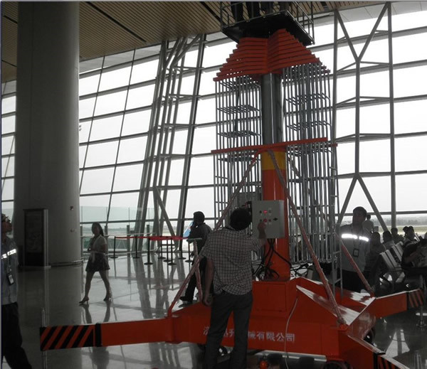 該產(chǎn)品是一種多用途的單作用伸縮式套簡(jiǎn)油缸組成的垂直升降機(jī)械??蓮V泛用于車站、碼頭、賓館大廳、車間等高空作業(yè)的場(chǎng)合。整機(jī)設(shè)計(jì)結(jié)構(gòu)緊湊、晃動(dòng)小、重量輕、移動(dòng)方便等特點(diǎn)。